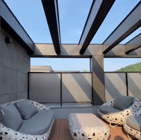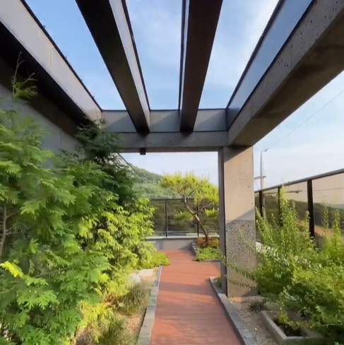 루프탑 옥상은 이 집의 하이라이트라고 할 수 있습니다. 하늘과 가장 가까운 이곳에서 가족과 함께 바비큐 파티를 열거나, 혼자만의 힐링 시간을 가질 수 있죠.