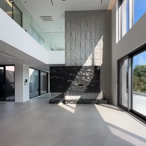 높은 층고의 거실은 개방감을 극대화하며, 테라스에서 탁 트인 전망을 즐길 수 있습니다. 넉넉한 주차 공간은 다수의 차량을 소유한 가족이나 방문객이 많은 가정에 적합하며, 수영장은 가족과 함께 여유로운 시간을 보내기에 좋습니다.