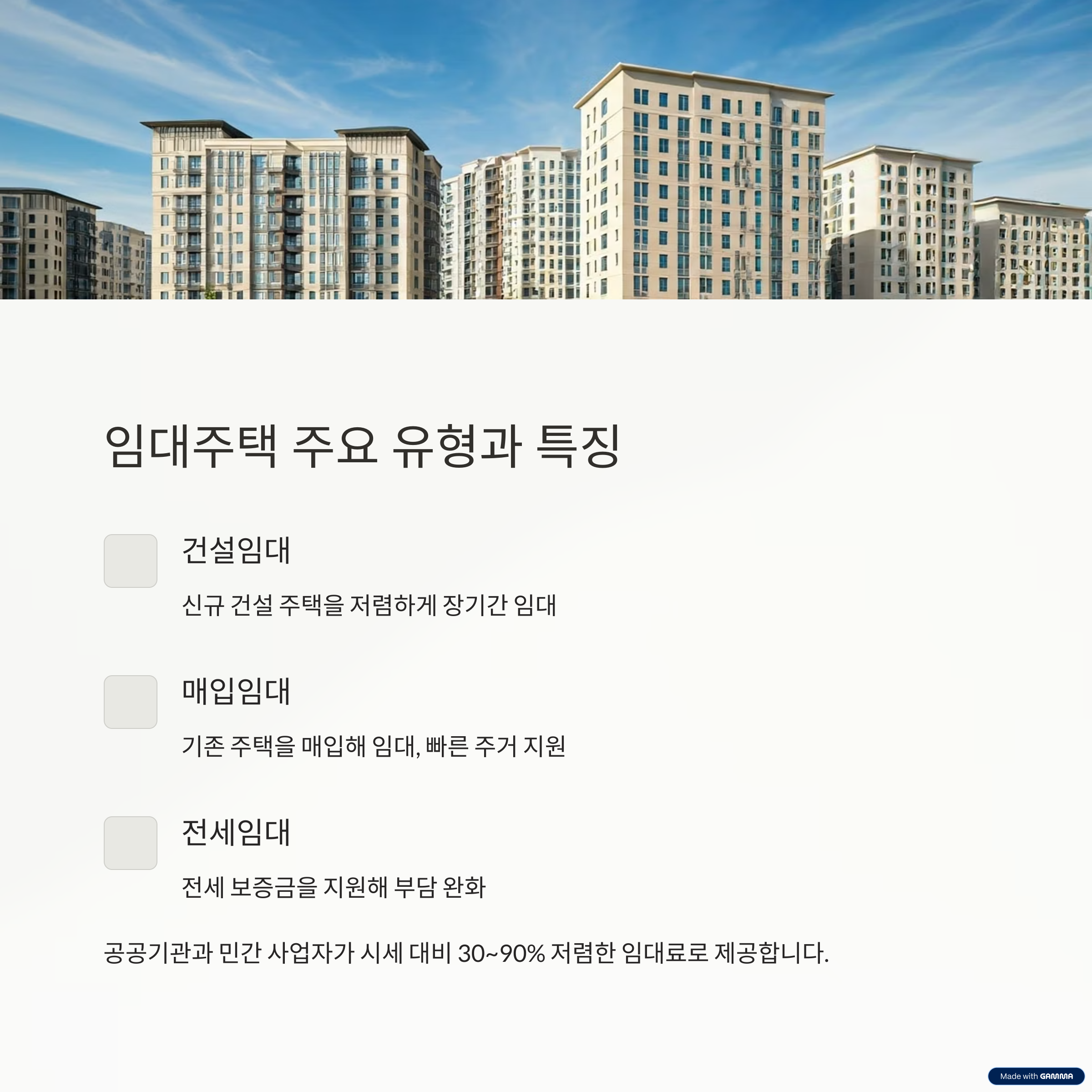 무주택 저소득 서민을 위한 안정적인 주거, 다양한 임대주택 제도를 통해 이룰 수 있어요. 공공건설부터 민간매입형까지, 내 상황에 딱 맞는 임대주택 유형과 조건을 지금부터 자세히 알려드릴게요!