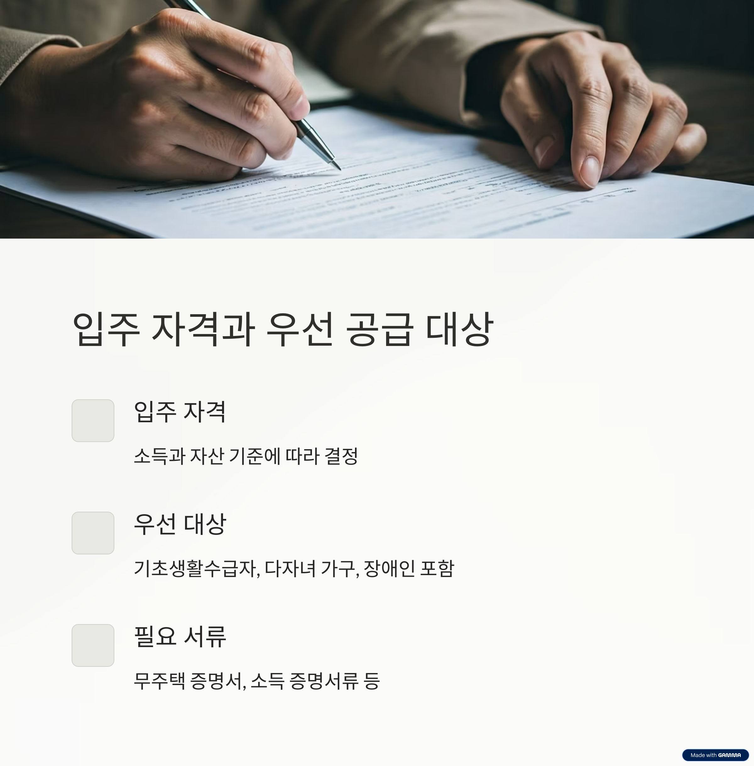 소득·자산 수준에 따라 입주 자격이 나뉘며, 보증금과 임대료 역시 시세보다 저렴하게 책정됩니다.