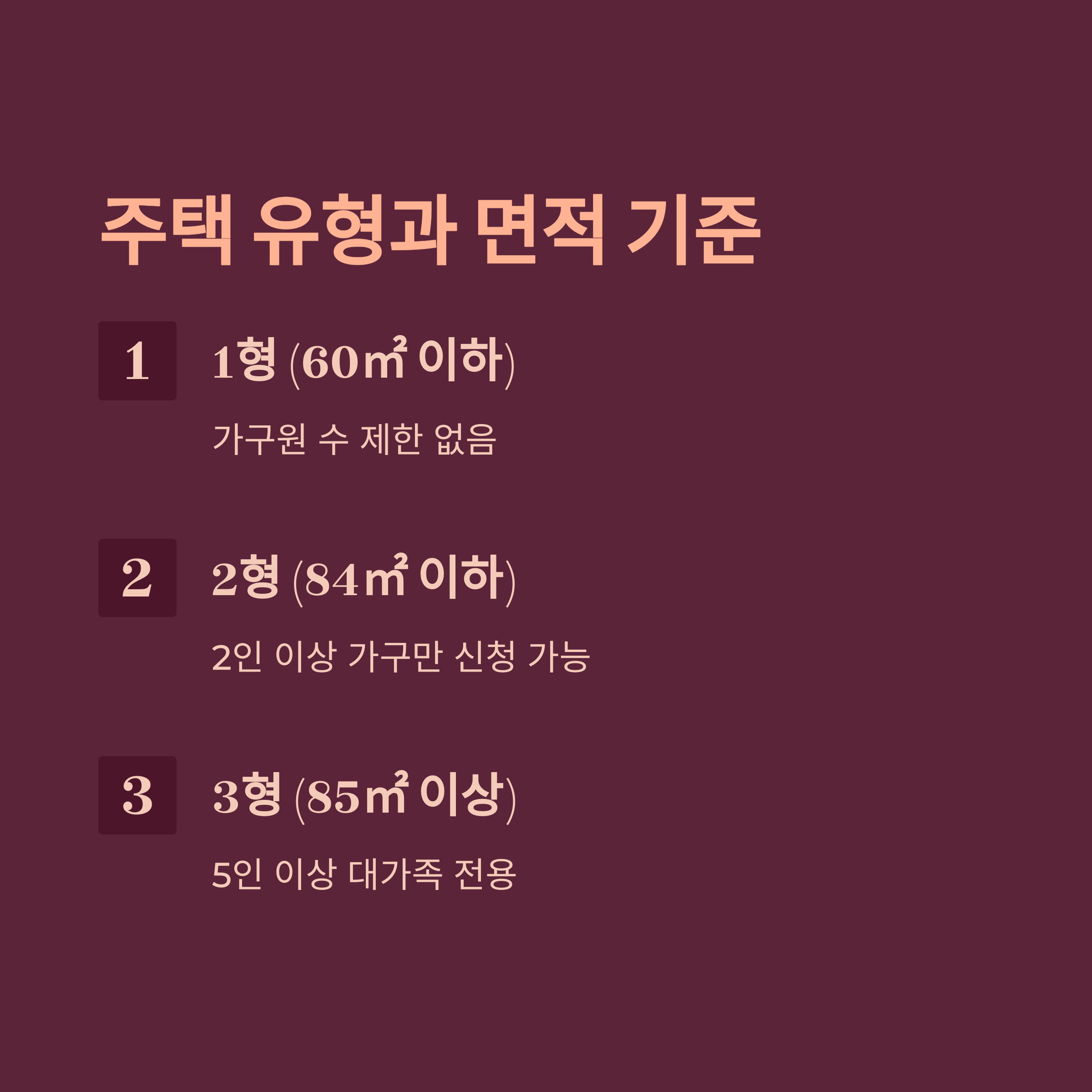 | 3형 | 85㎡ 이상 (대형) | 5인 이상 가구 |