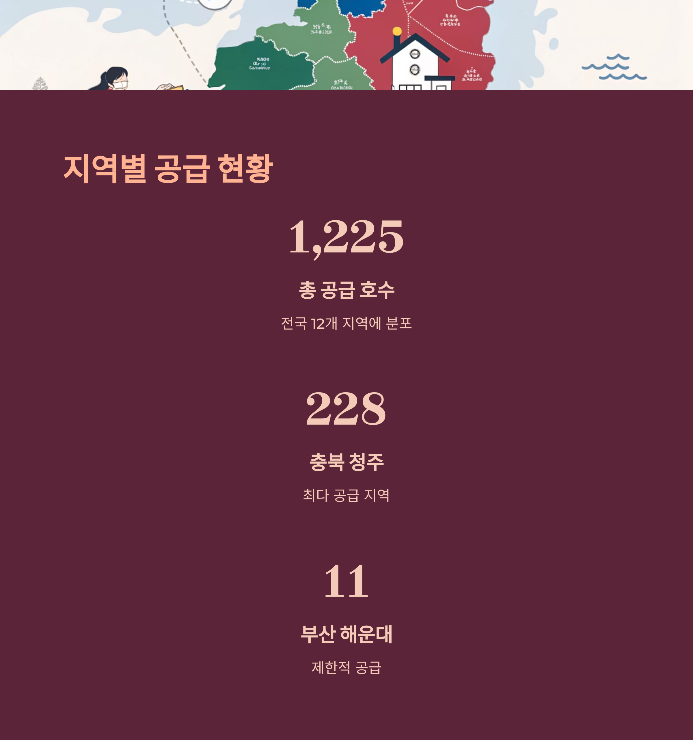 전국 12개 지역에서 총 1,225호가 공급됩니다. 예를 들어, 충북 청주는 228호로 가장 많은 수가 공급되고, 수도권 일부 지역은 공급이 매우 제한적입니다.
